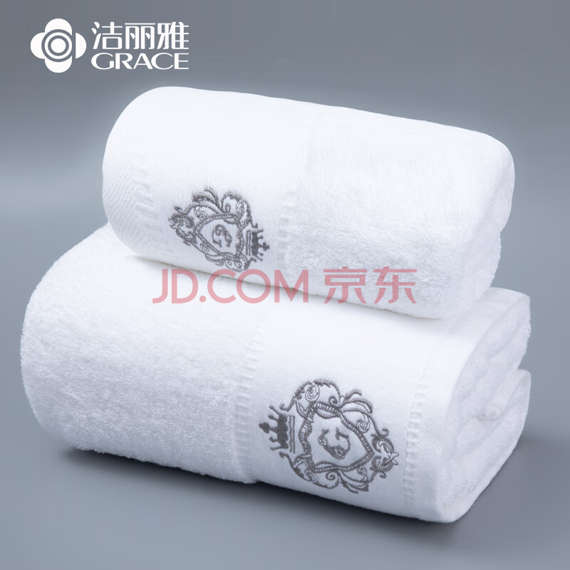 商品相册:洁丽雅(Grace)五星级酒店纯棉抗菌防螨毛浴巾组合套装全棉大号通用两件套 白色第