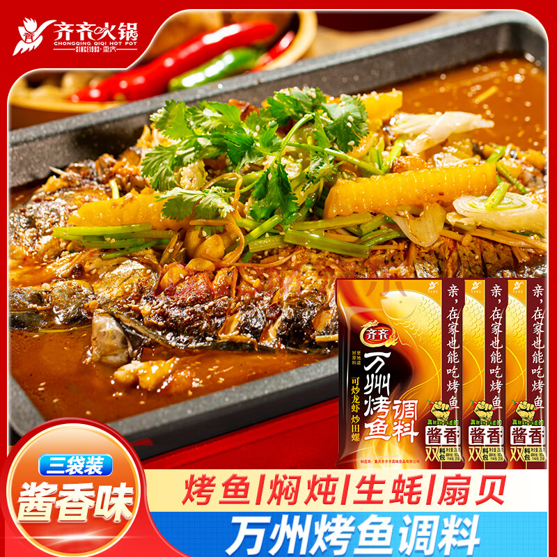 商品相册:齐;齐齐餐饮万州烤鱼调料纸包鱼酱料200g*3袋 酱香第1张/共8