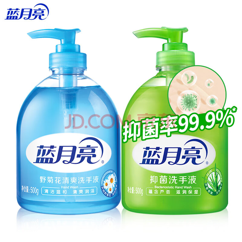商品相册:蓝月亮洗手液组合芦荟500g+清爽500g 芦荟抑菌 清爽去油去腥 厨卫两用第