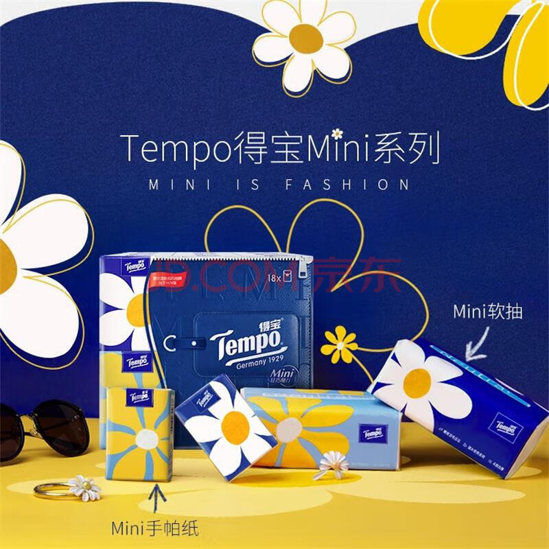 商品相册:得宝抽纸 Mini系列18包*4层80抽 面巾纸 天然无香新老款随机发货T2898第