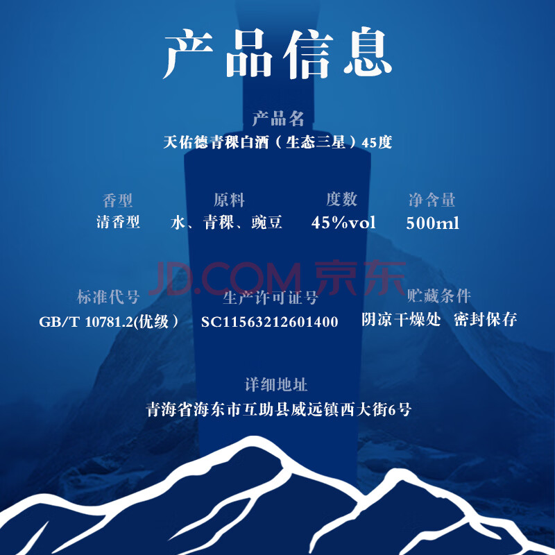 商品相册:天佑德 三星生态 清香型白酒45度500ml*6瓶整箱装【热门商品】第