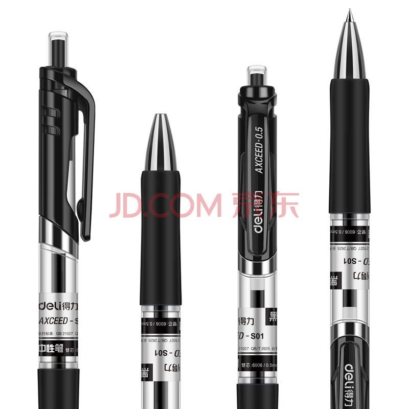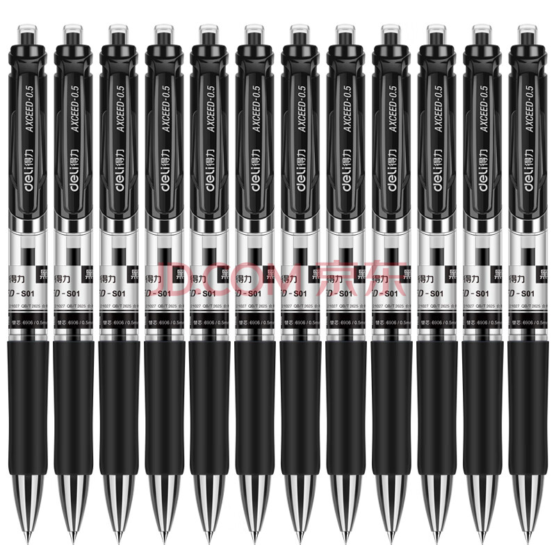 商品相册:得力(deli)33388按动中性笔 签字笔0.5mm 软胶手柄 黑色 12支/盒2盒【ZY】第