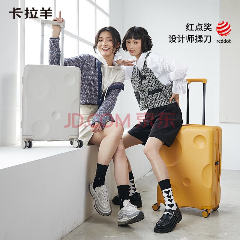 商品相册:卡拉羊芝士箱防刮纯PC行李箱24英寸大容量女拉杆箱男旅行箱8109生巧黑第