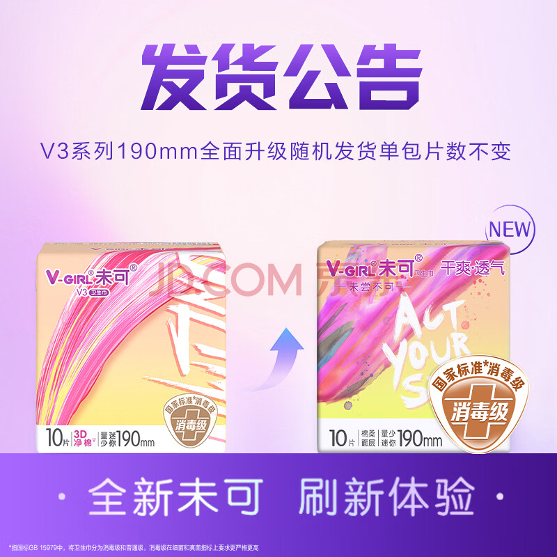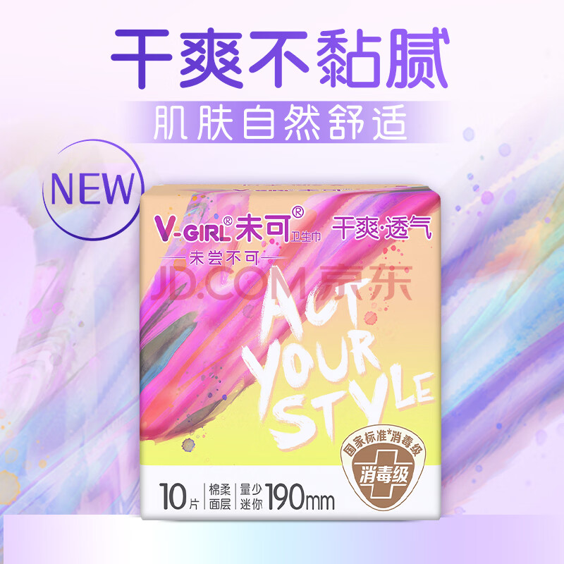 商品相册:未可消毒级卫生巾V3迷你巾190mm*10片超薄 京东自营第