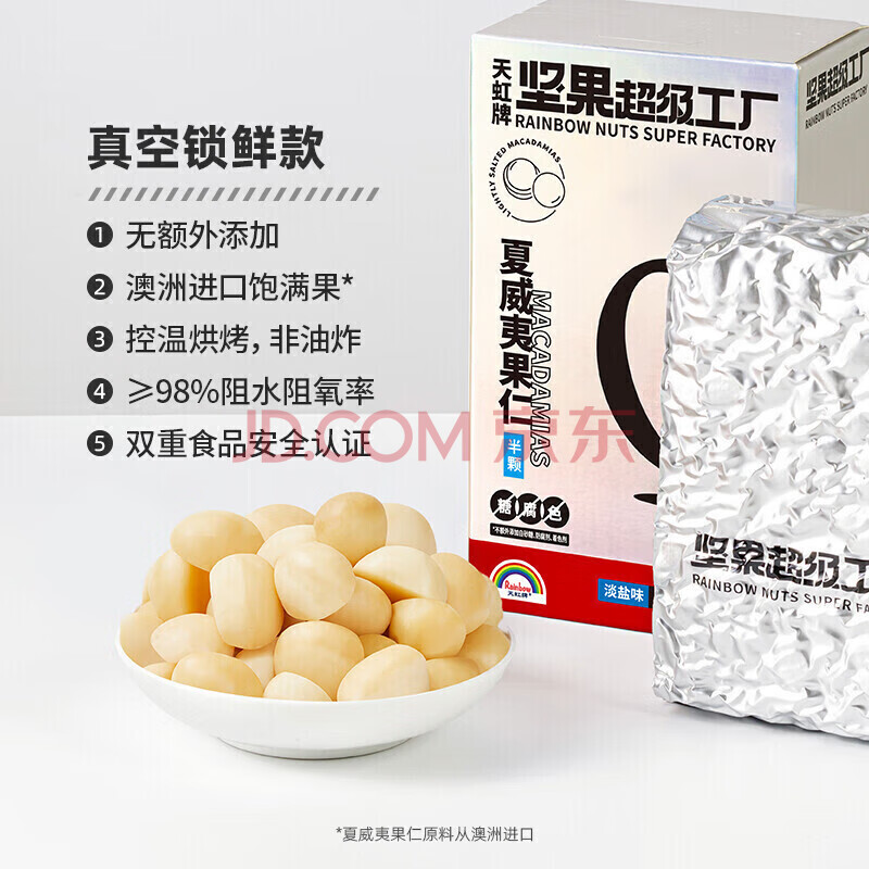 商品相册:天虹牌夏威夷果仁淡盐味开边450g坚果炒货每日坚果休闲孕妇零食干果送礼第