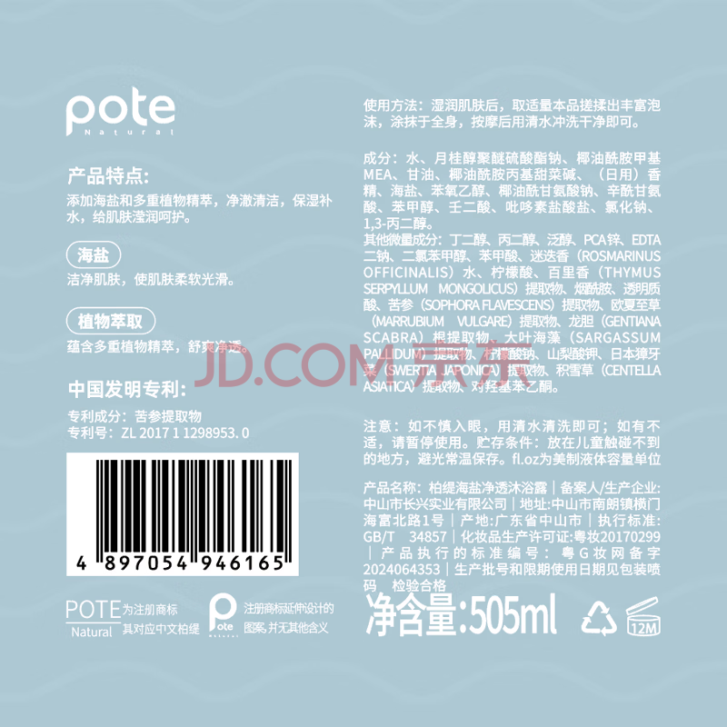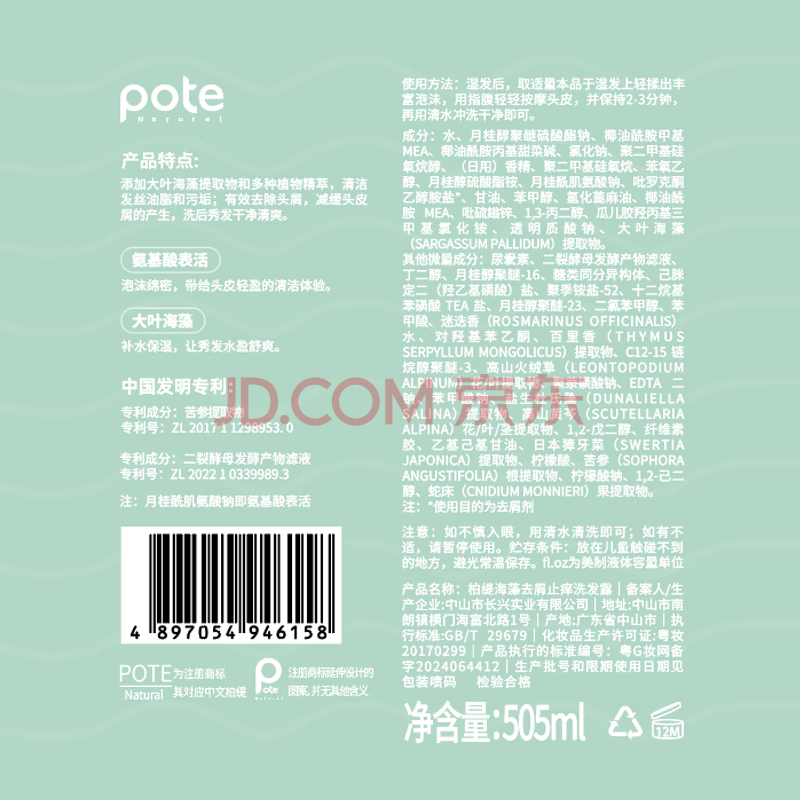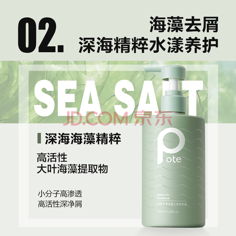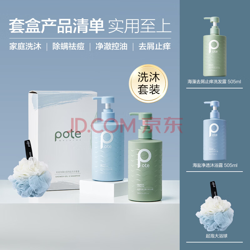 商品相册:柏缇去屑洗沐套装(海盐沐浴露+海藻洗发水) 除螨控油去屑止痒 505ml*2第