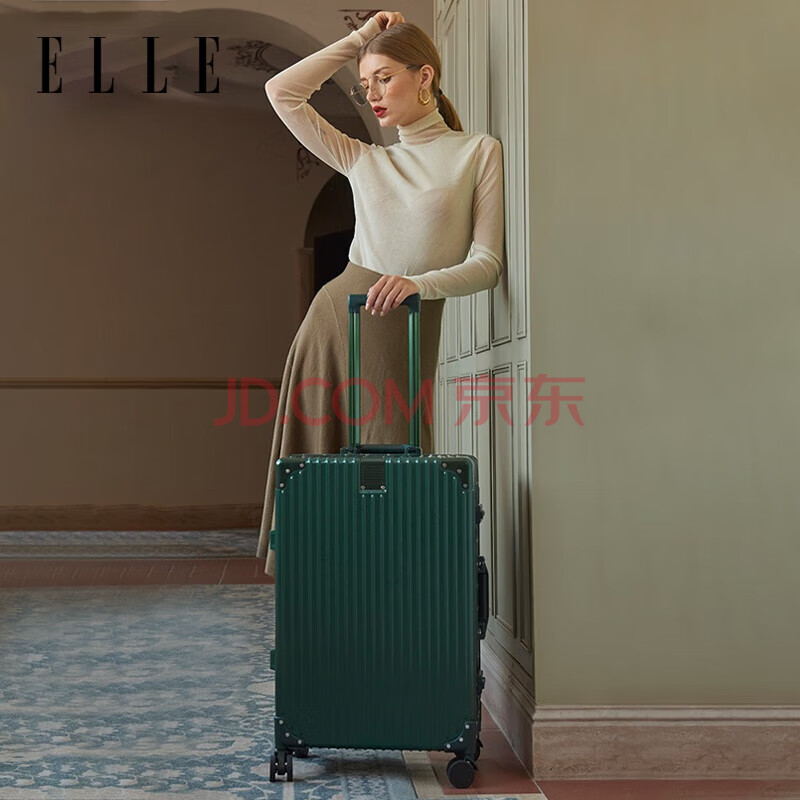 商品相册:ELLE法国24英寸墨绿色行李箱拉杆箱时尚TSA密码箱万向轮拉链旅行箱第