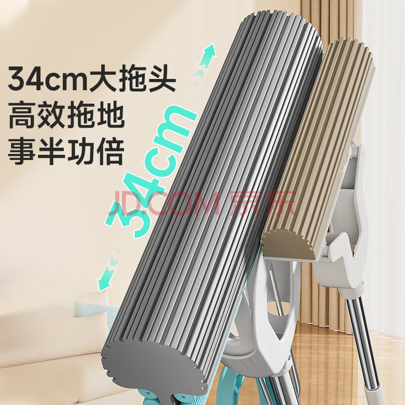 商品相册:美丽雅免手洗海绵拖把34cm吸水胶棉家用一拖净卫生间拖地神器墩布第