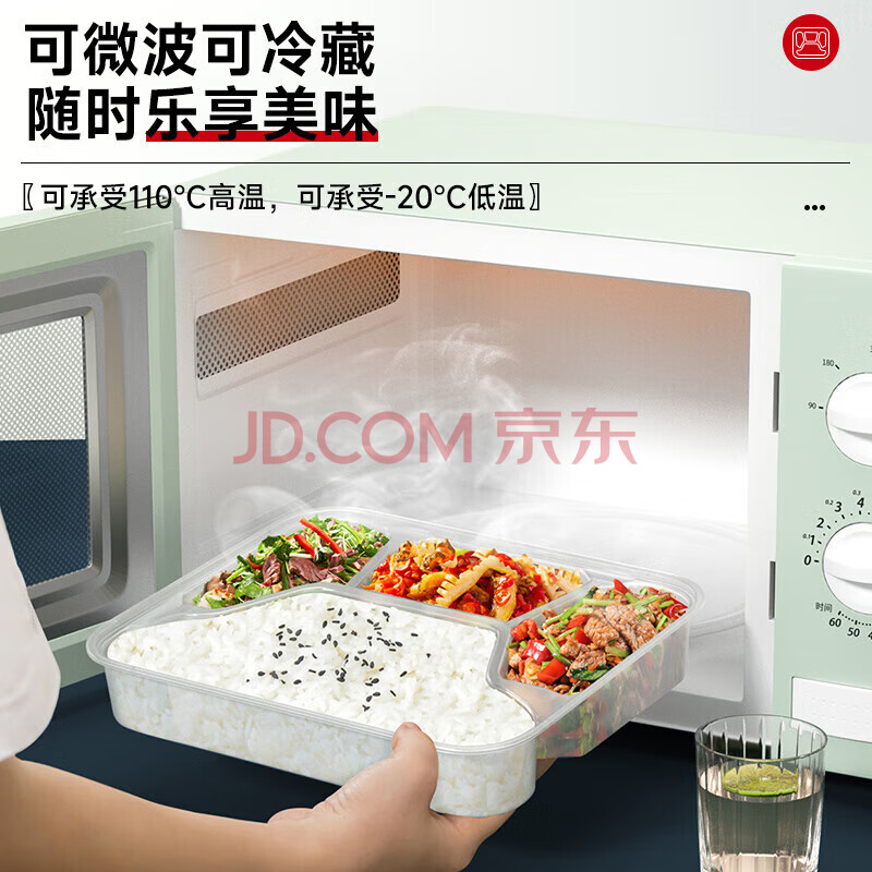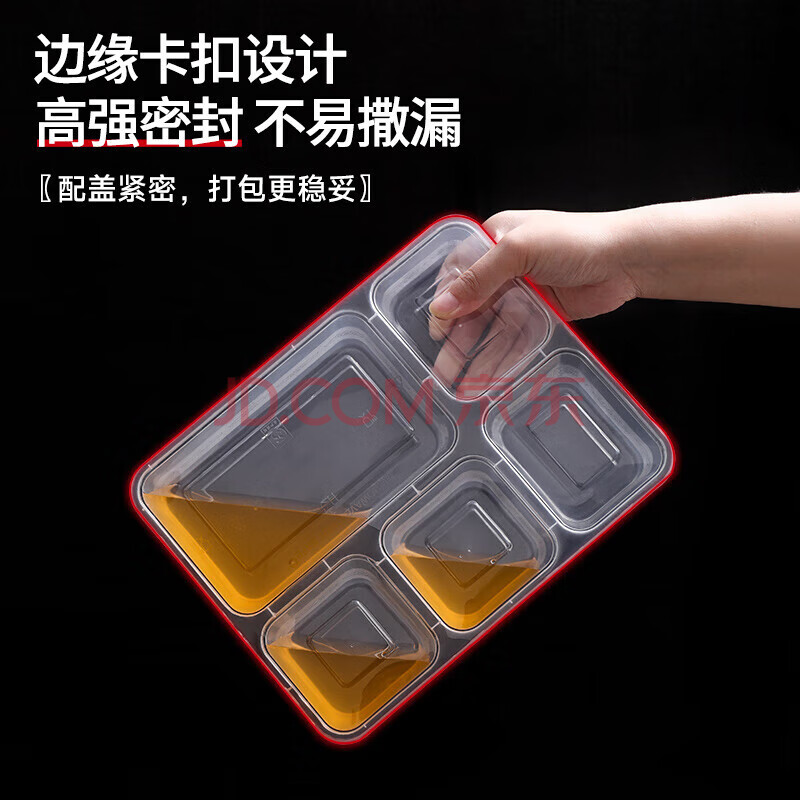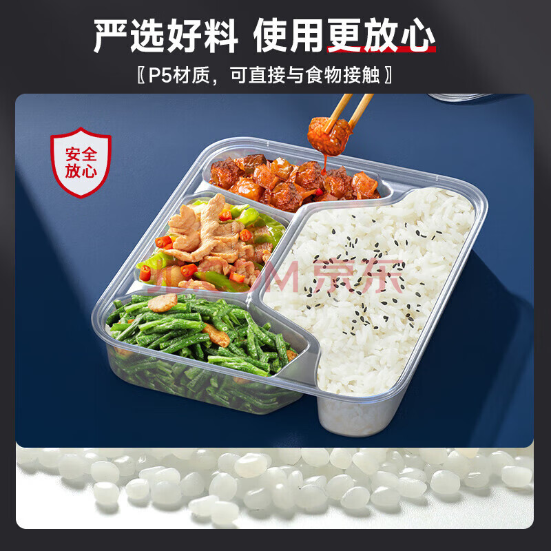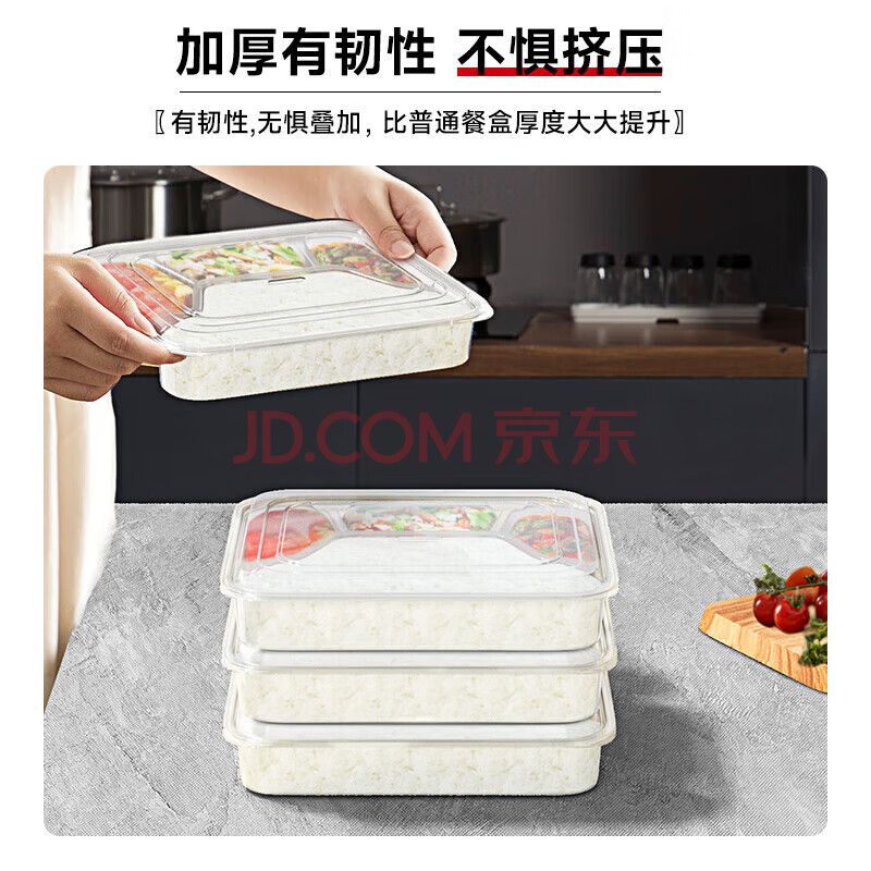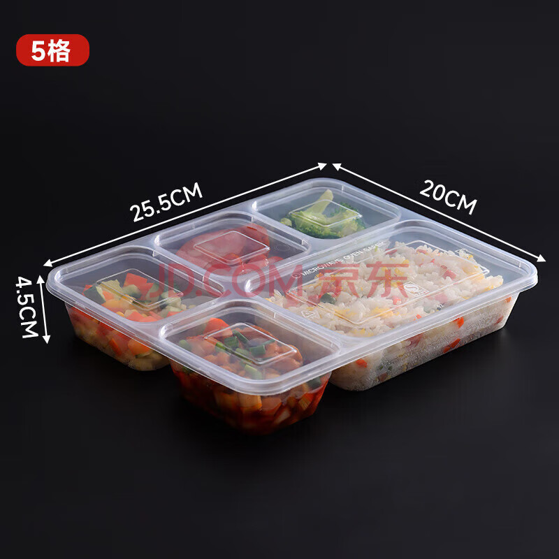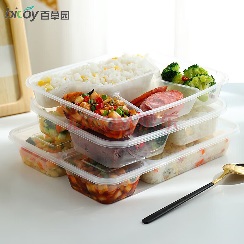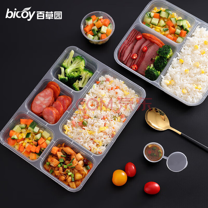 商品相册:百草园 一次性饭盒分格餐盒食品级五格外卖打包盒1500ml*150套餐具透明第