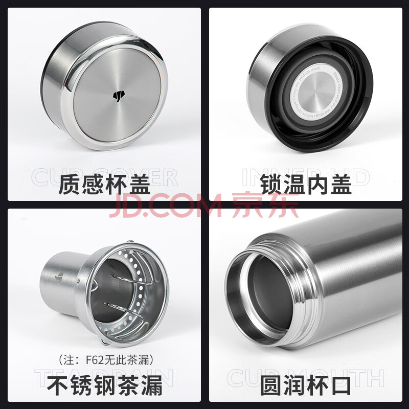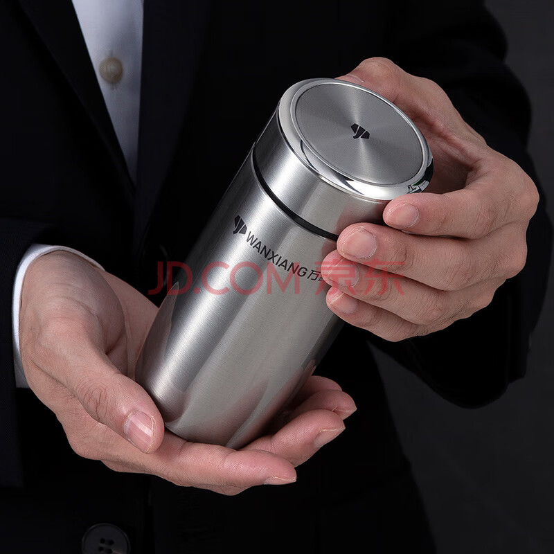 商品相册:万象(WANXIANG)男女士保温杯360ML钛银色F63商务办公带茶漏水杯便携弧形泡茶杯第