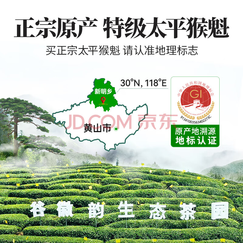 商品相册:谷徽韵绿茶太平猴魁特级120g礼盒装春茶安徽茶叶节日送礼品第
