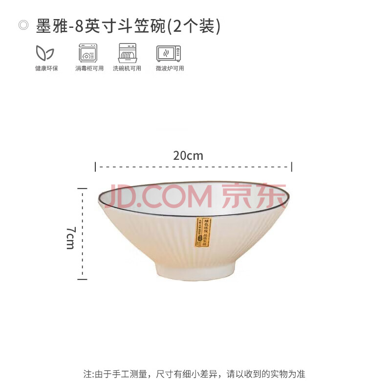 商品相册:浩雅釉下彩景德镇陶瓷餐具拉面碗汤碗泡面碗饭碗墨雅8英寸斗笠碗2个装第