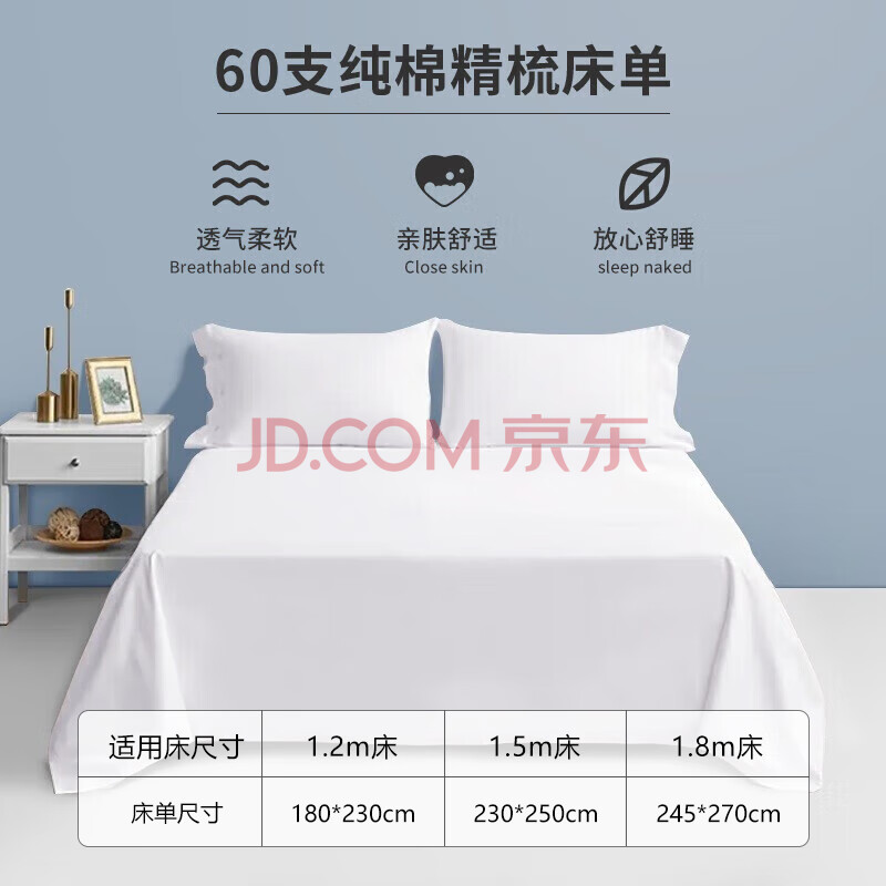 商品相册:源生活 纯白色床单单件 60支纯棉酒店全棉床罩床裙 1.8米床 245x270cm第