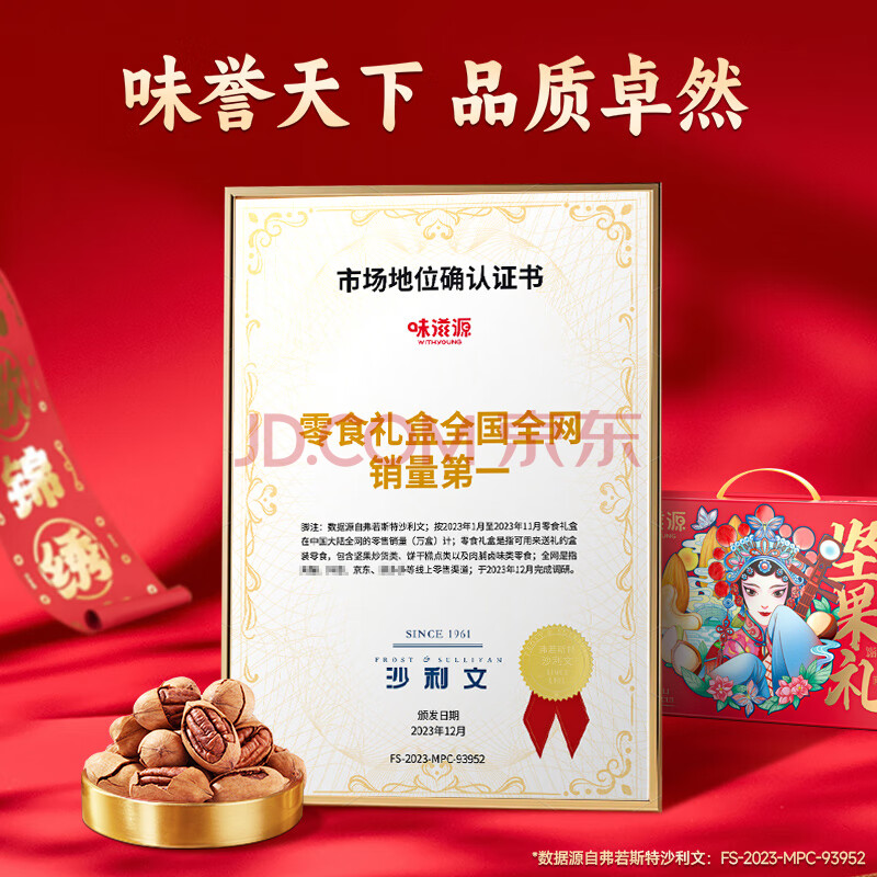 商品相册:味滋源坚果礼盒1440g 碧根果夏威夷果熟腰果核桃干果零食 节日团购送第1张/共6