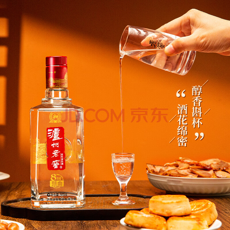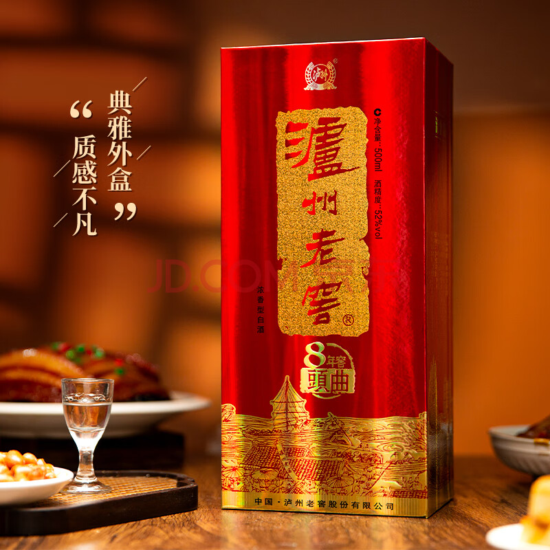商品相册:泸州老窖 八年窖头曲 流金版 浓香型白酒 52度500ml 单瓶装第