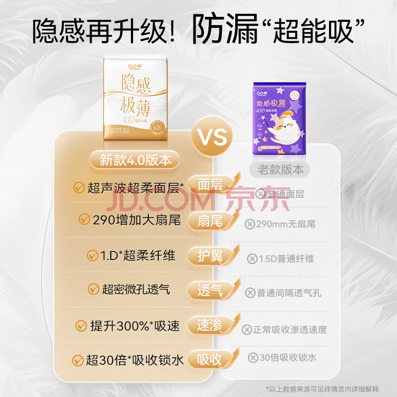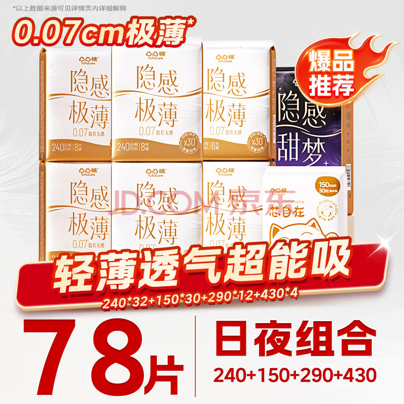 商品相册:凸凸棉卫生巾极薄0.07日夜用78片姨妈巾套装含护垫学生夏天用京东自营第