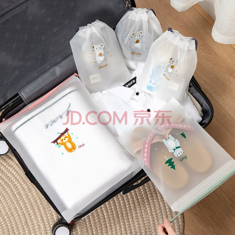商品相册:ToMill旅行收纳分装袋 抽绳束口防泼水旅行家居衣物分装整理袋 3大3小第
