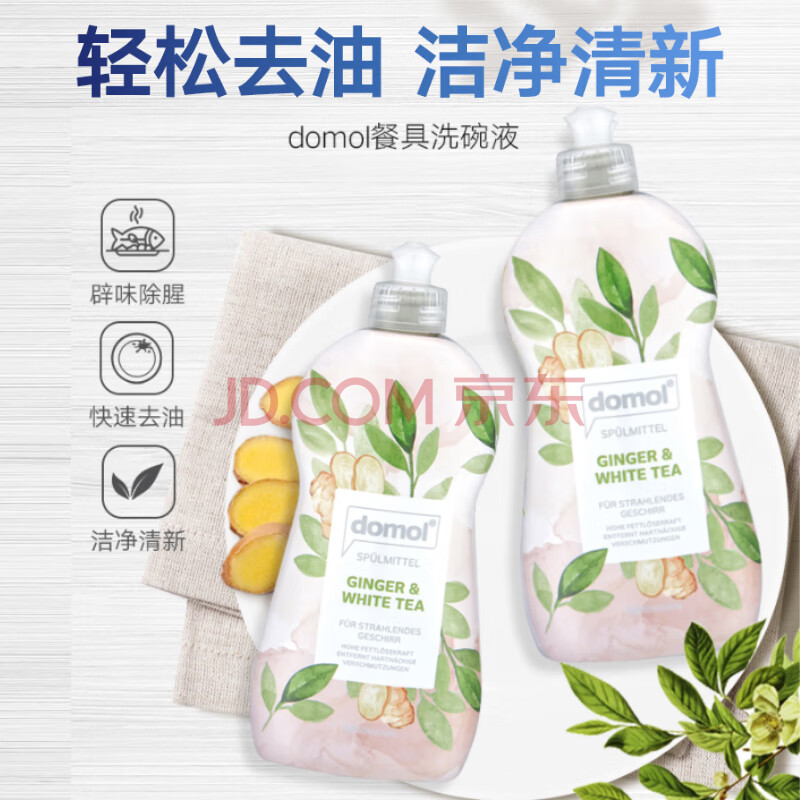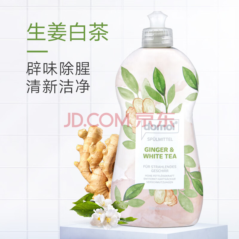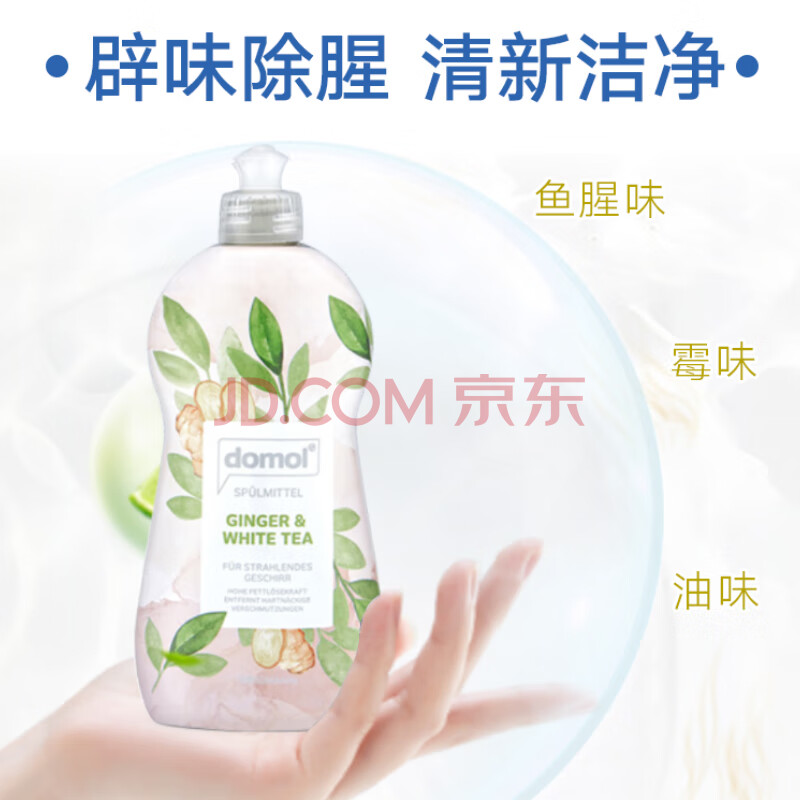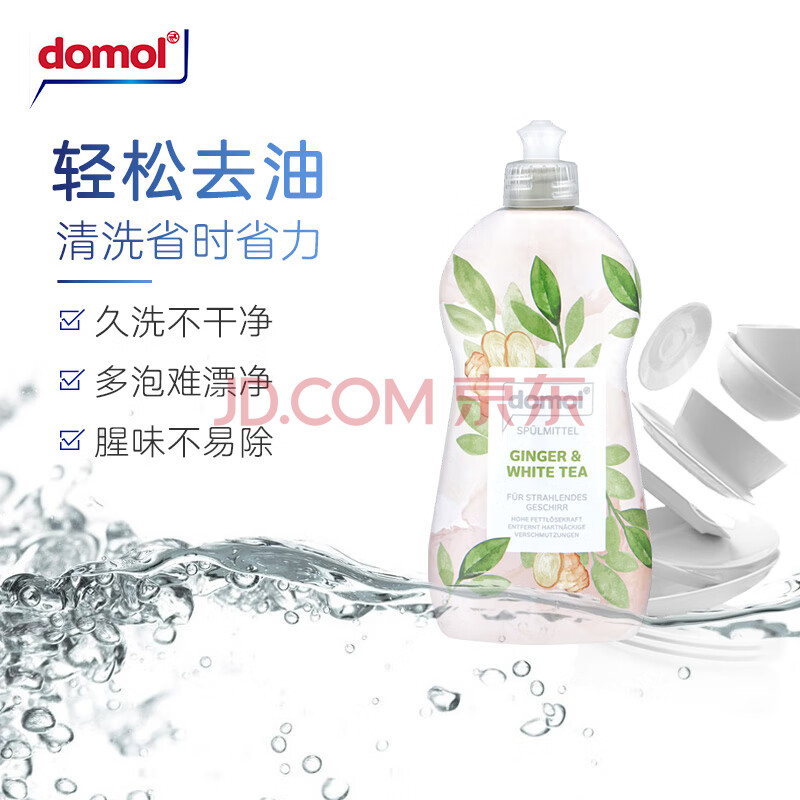 商品相册:Domol 洗洁精 洗涤灵 洗洁精小瓶餐具果蔬清洗剂 生姜白茶味500ml第