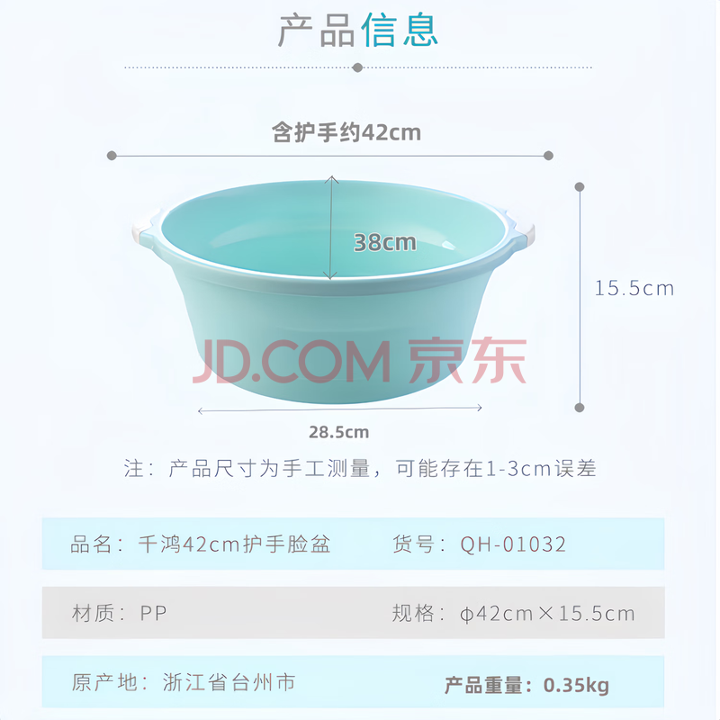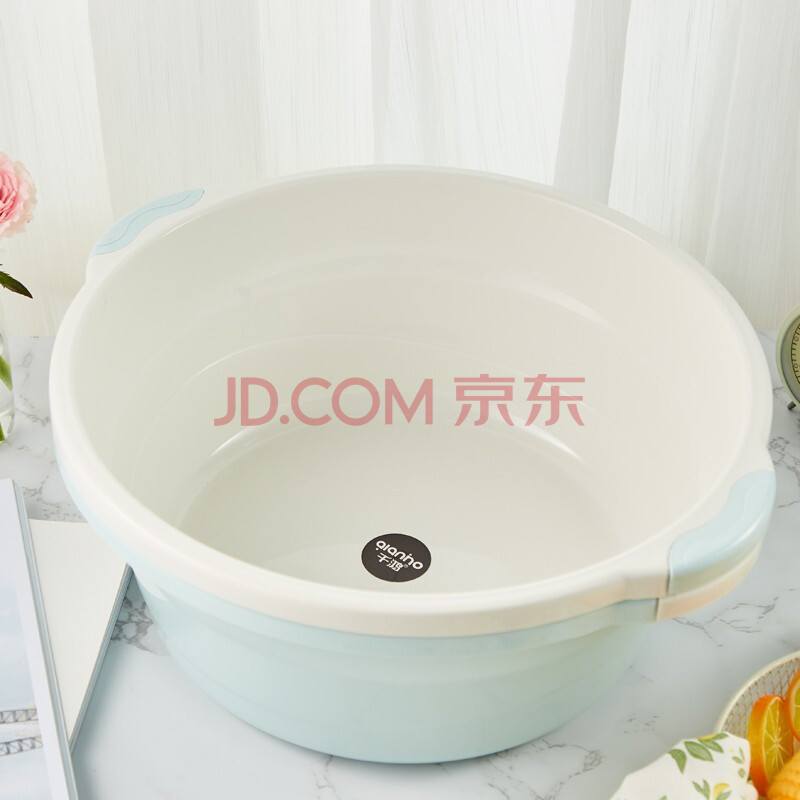 商品相册:千鸿 脸盆含护手约42CM单只装加厚塑料盆厨房洗菜盆QH-01032颜色随机第1张/共8
