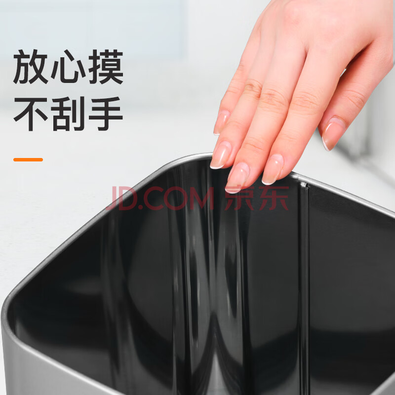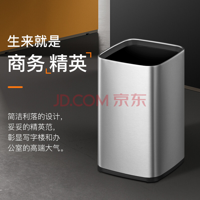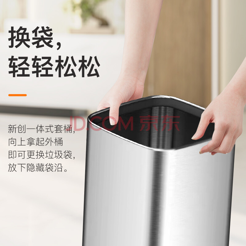 商品相册:EKO无盖垃圾桶10L雅黑家用大号厨房卫生间不锈钢纸篓张若昀推荐9084第