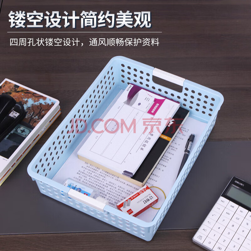 商品相册:优必利 文件框文件篮财务单据资料收纳篮文件筐 镂空塑料资料框收纳筐小学生可放a4纸 1个 8902蓝色第