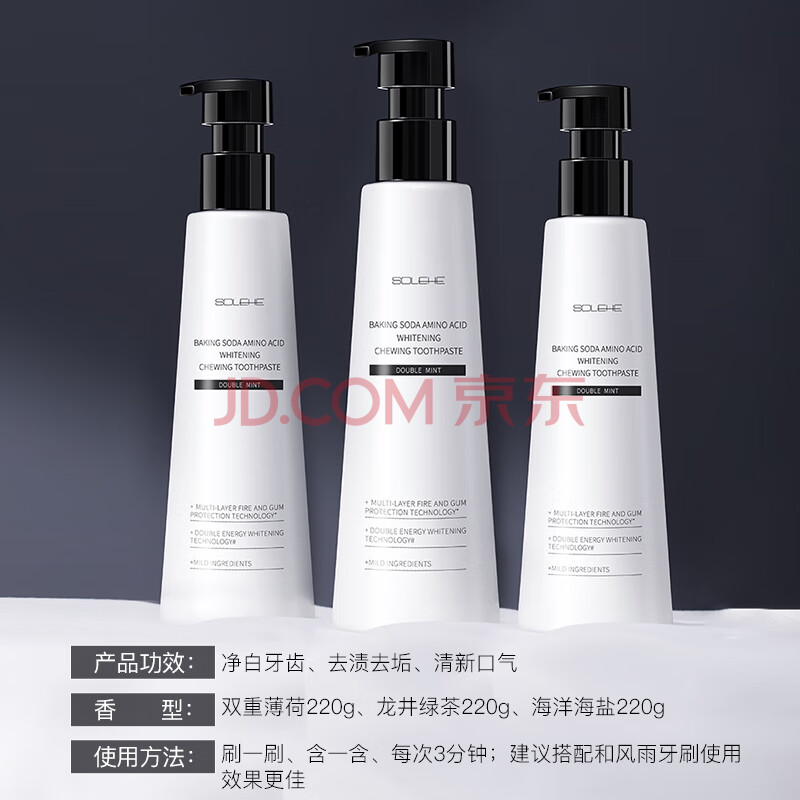 商品相册:和风雨小苏打牙膏美白牙膏去口臭去黄去烟渍家庭装牙膏按压式220g*3瓶第