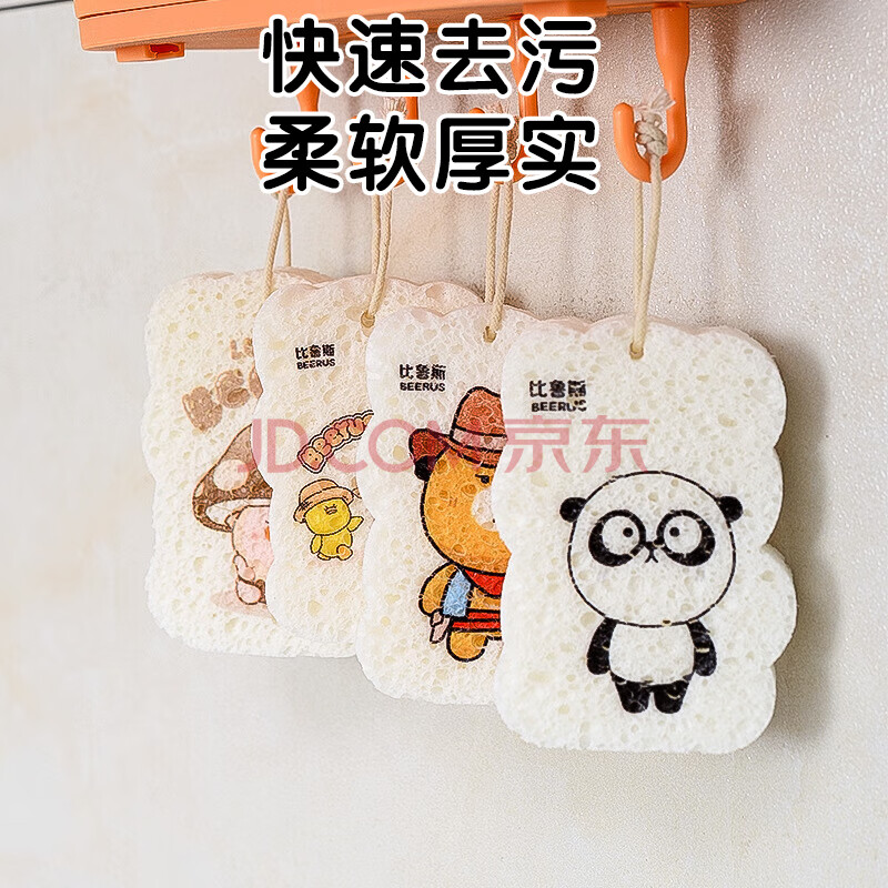 商品相册:雅高抹布木浆海绵9*6CM4片装洗碗海绵厨房吸水魔力擦厨房清洁第