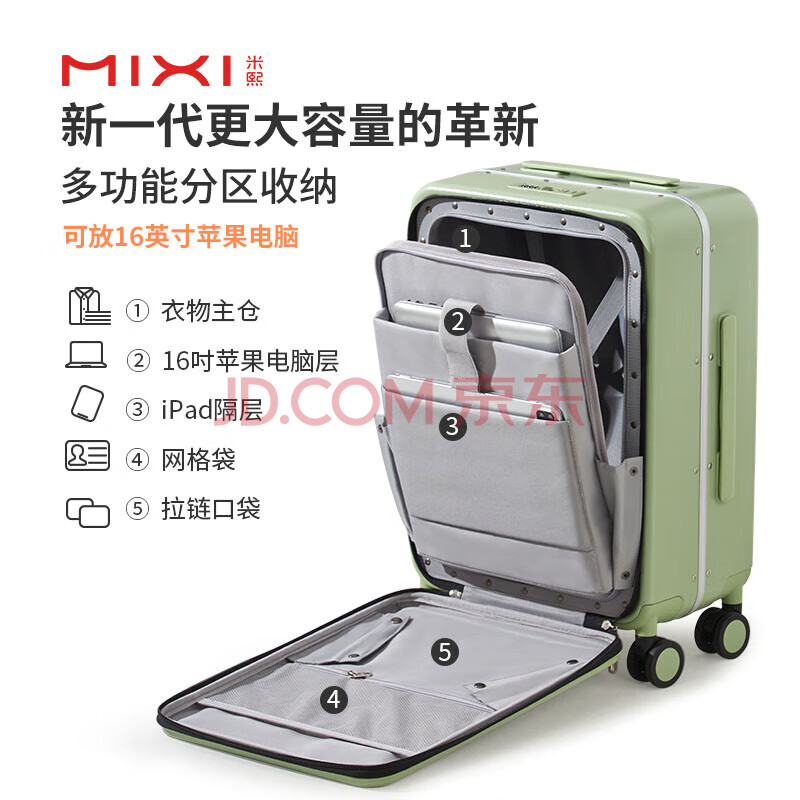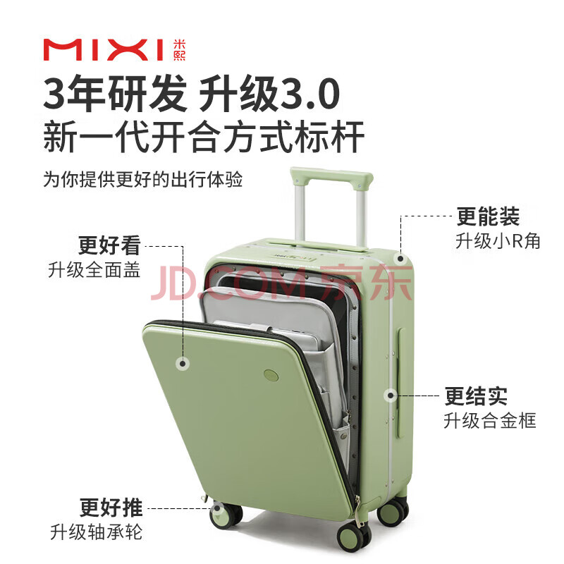 商品相册:米熙前开盖拉杆箱子行李箱大容量密码铝框箱女旅行箱20英寸牛油果绿60第