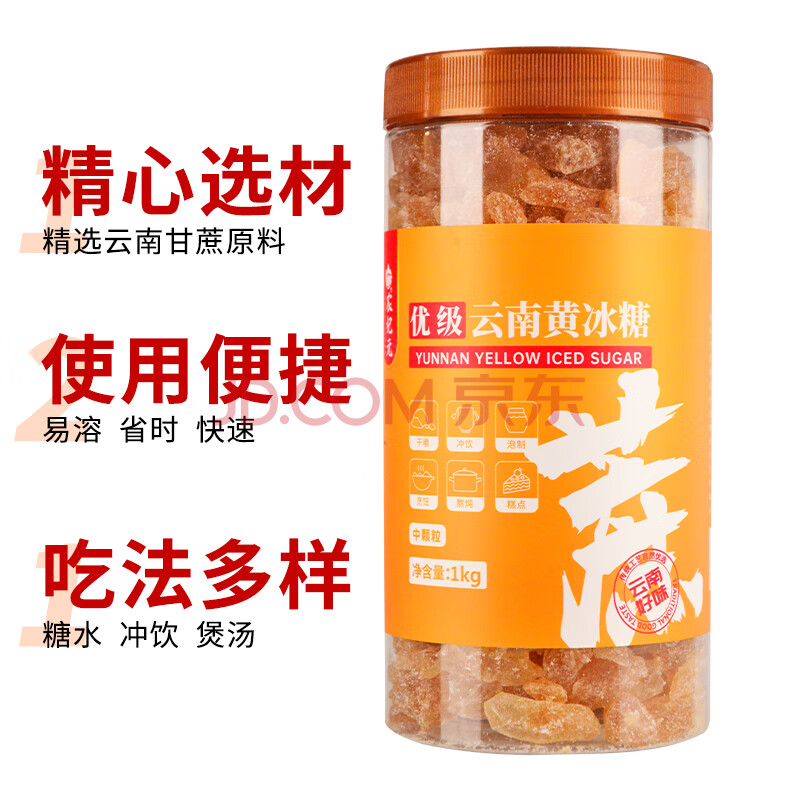 商品相册:农纪元云南优级黄冰糖1kg罐装中颗粒多晶老冰糖块【优级】煲汤炖煮甜品第