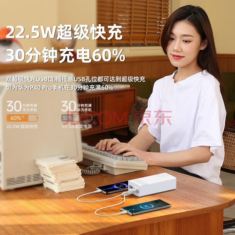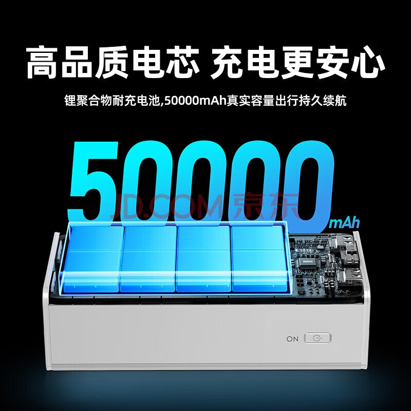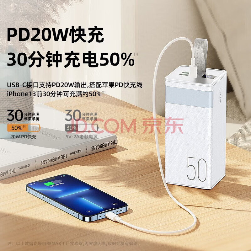 商品相册:睿量(REMAX)睿量 充电宝50000毫安时移动电源大容量22.5W超级快充PD20W便携小巧智能数显 白色 RPP-321第