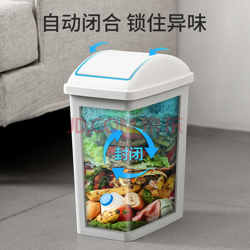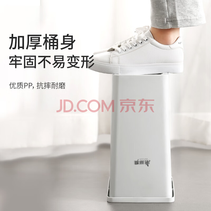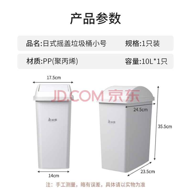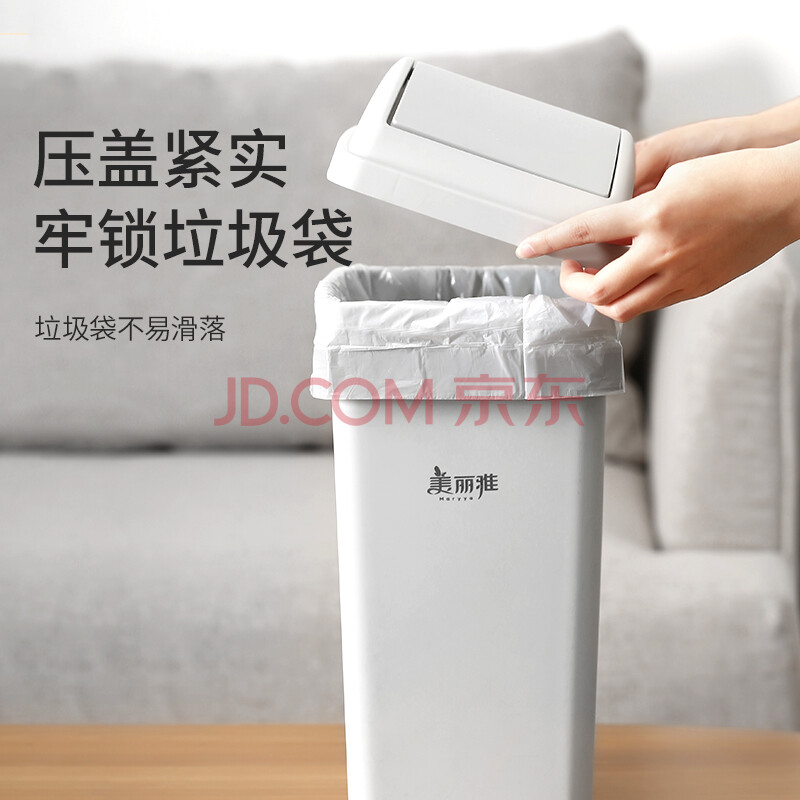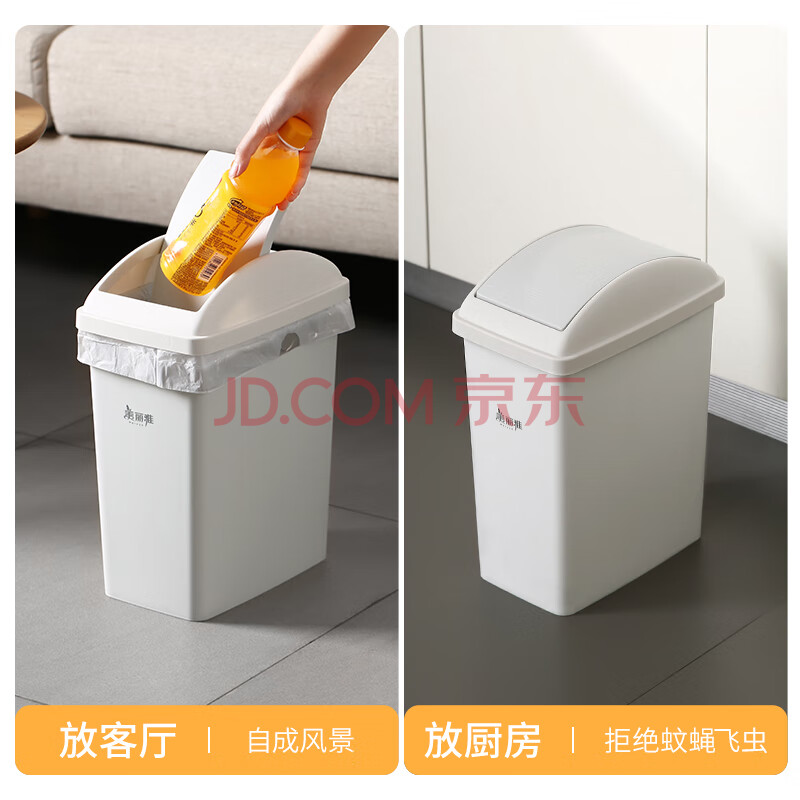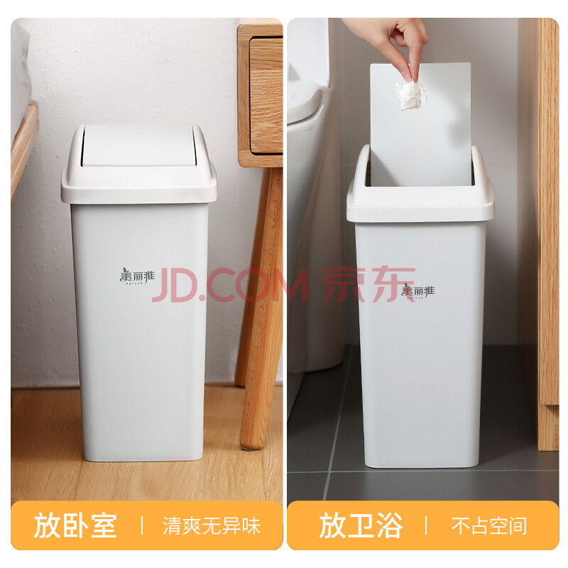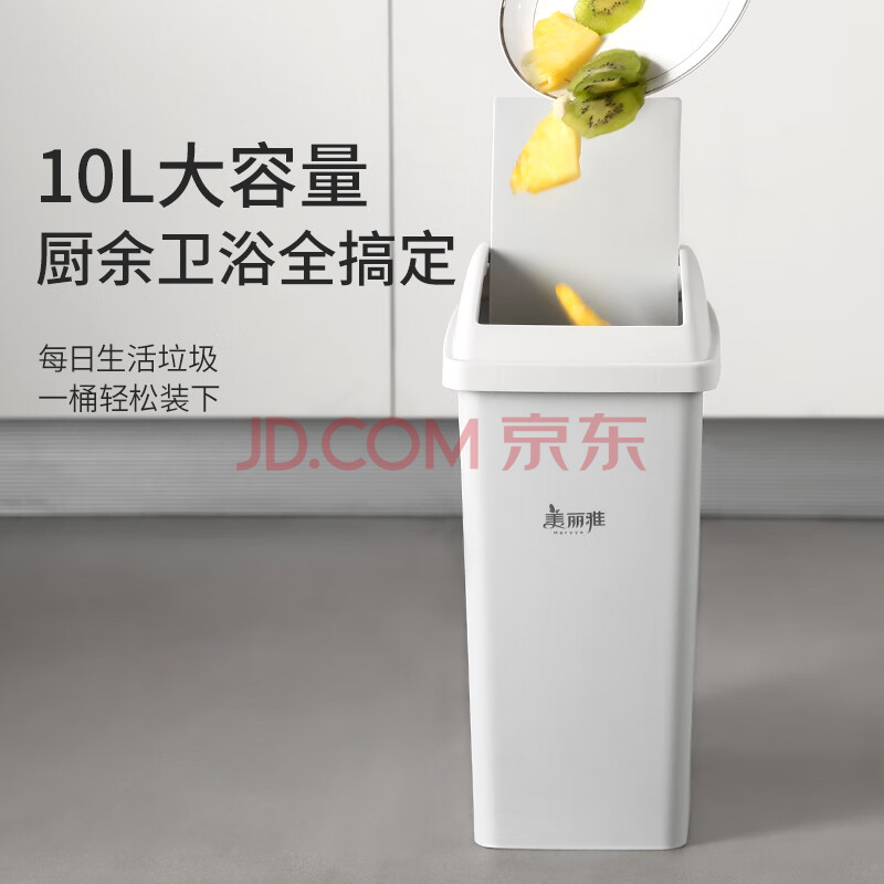商品相册:美丽雅翻盖垃圾桶10L大号白色卫生间厕所夹缝窄缝专用厨房客厅家用摇盖第
