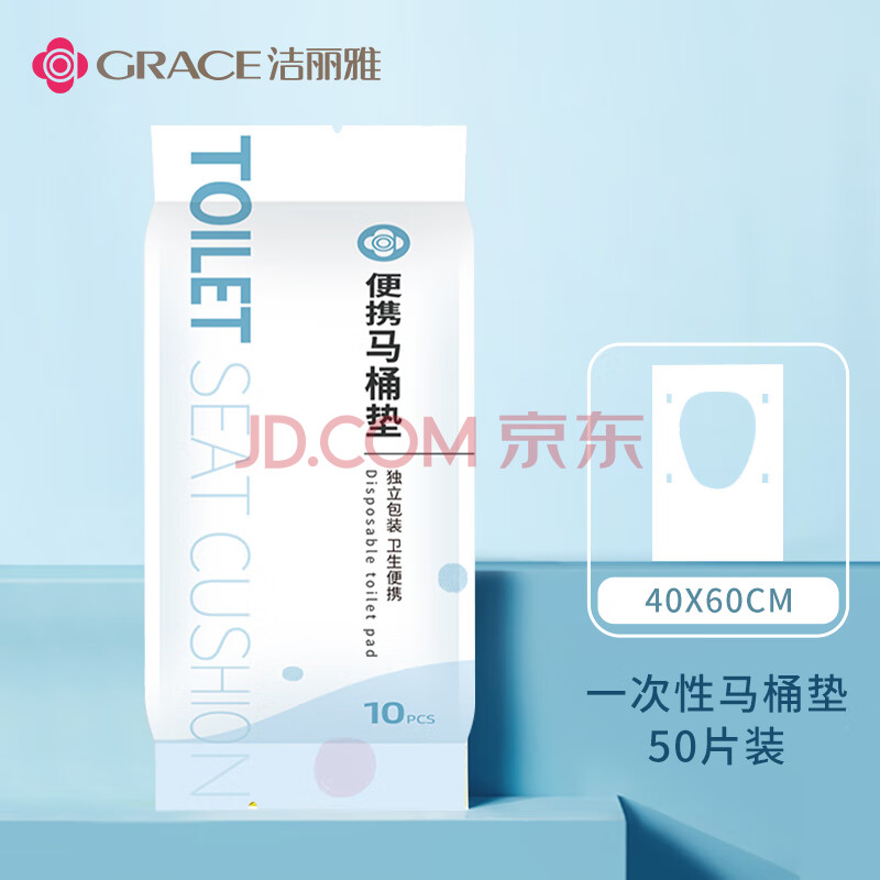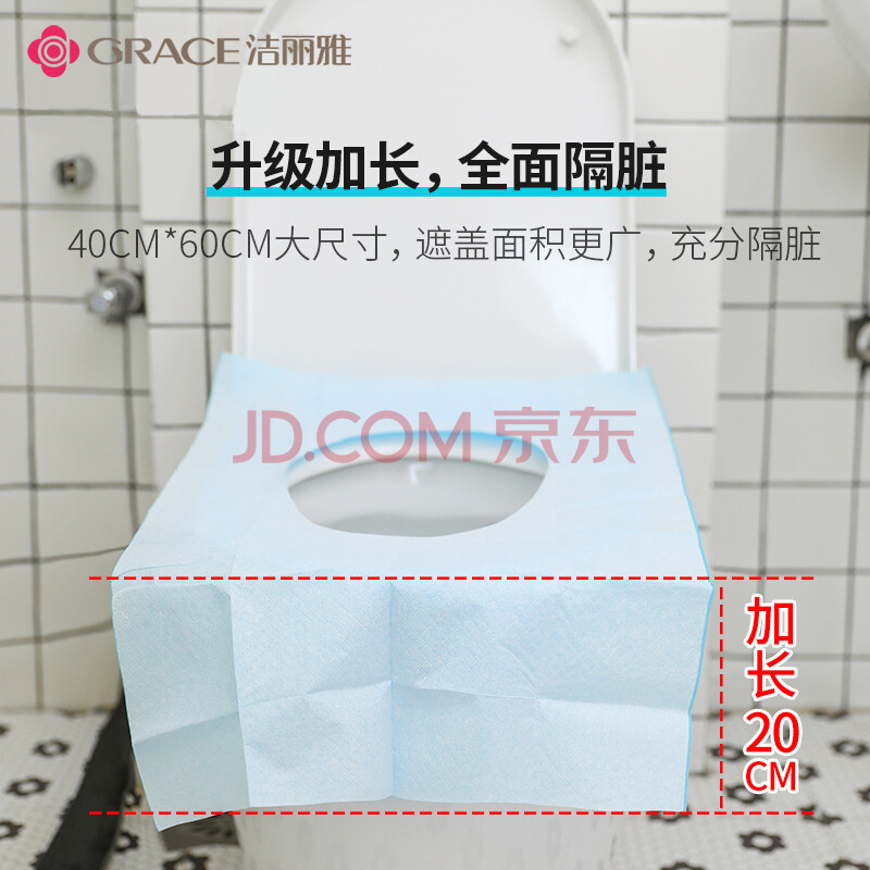 商品相册:洁丽雅一次性马桶垫旅行粘贴式酒店孕产月子便携厕所坐垫纸马桶垫50片第