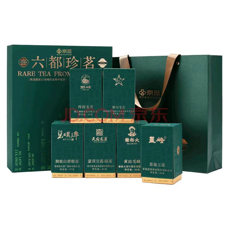 商品相册:京觅六都珍茗明前特级绿茶礼盒300g狮峰牌西湖龙井碧螺牌碧螺春第