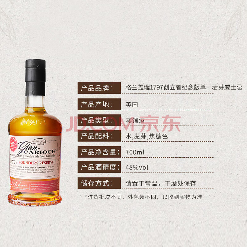 商品相册:格兰盖瑞(GLEN GARIOCH)1797单一麦芽700ml礼盒苏格兰高地威士忌洋酒第