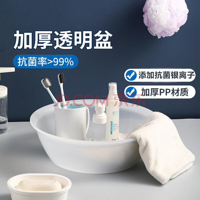 商品相册:茶花 抗菌洗脸盆26.5cm1只装塑料盆婴儿儿童洗衣服内裤通用盆圆盆第