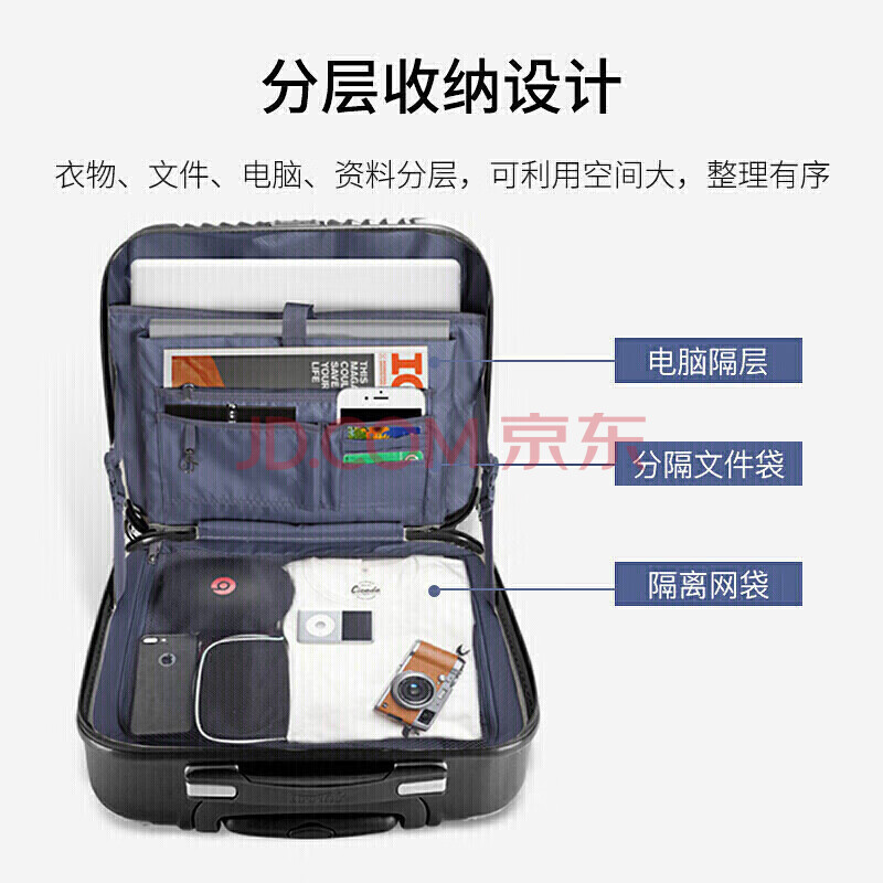 商品相册:莎米特行李箱16英寸 小型静音万向轮防刮高档商务登机拉杆箱PC338黑色第