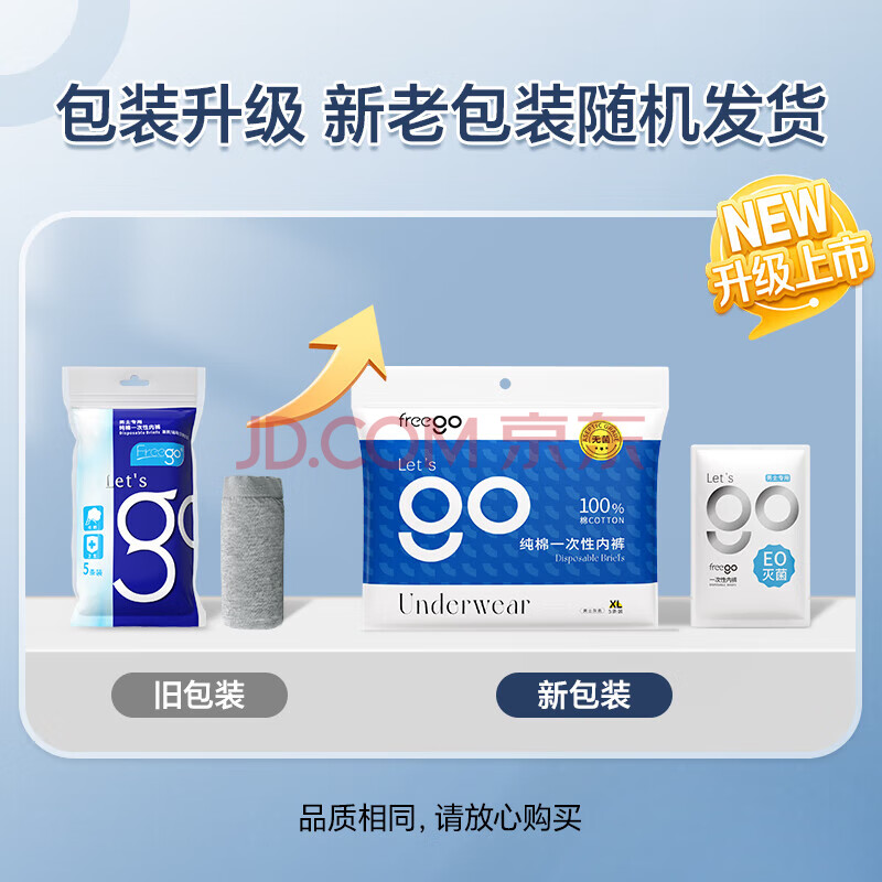 商品相册:Freego一次性内裤男士纯棉旅行便携内裤全棉5条装 男士灰色XL码第