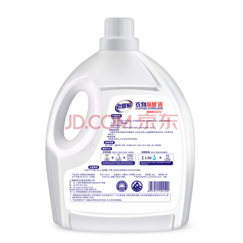 商品相册:老管家 衣物除菌液8斤装 配合洗衣液使用内外衣裤高效除菌剂第