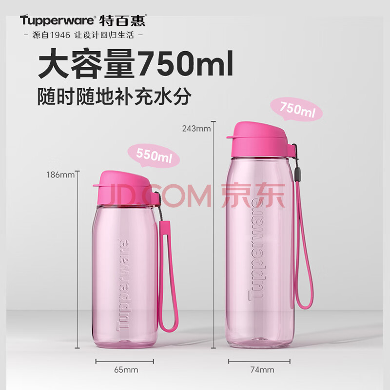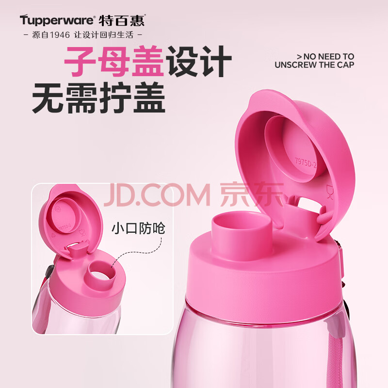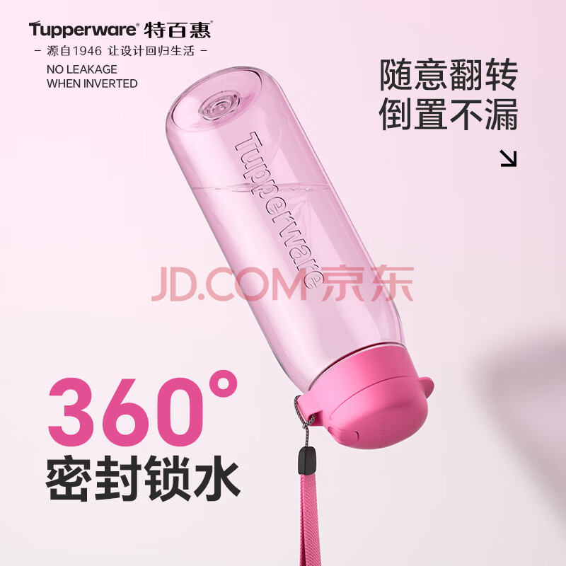 商品相册:特百惠(Tupperware)乐活750ml塑料杯男女士学生运动吸管水杯子大容量泡茶杯 柔桃粉第1张/共8