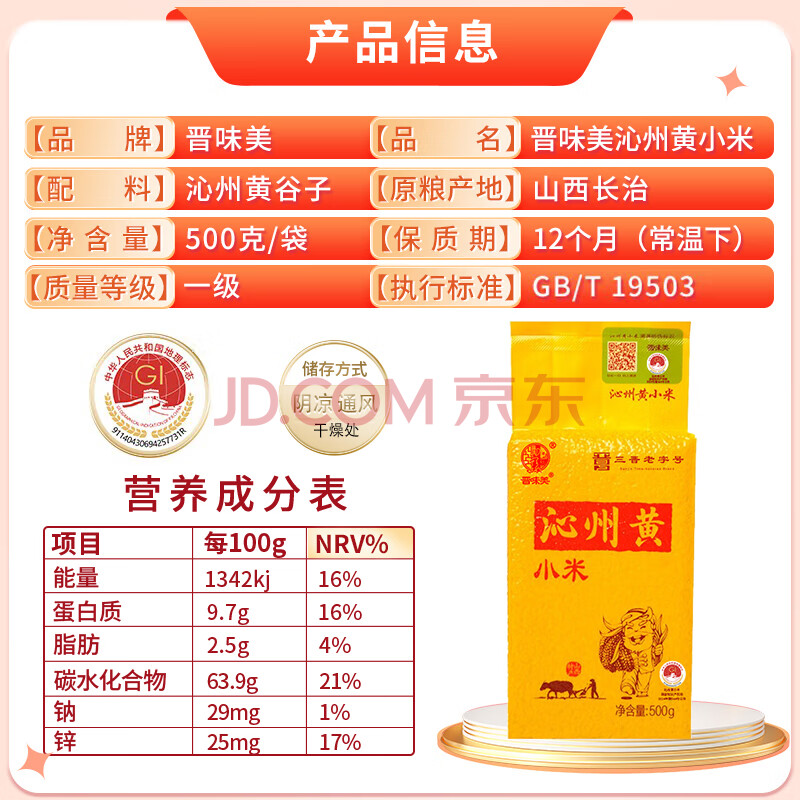 商品相册:晋味美 正宗沁州黄小米3斤山西特产小米粥山西小米黄小米真空装第