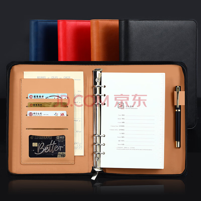 商品相册:嘉然恒 a5商务活页笔记本子多功能拉链包式记事本可拆卸替换内芯25K简约会议记录本工作日记本可定制 红色第