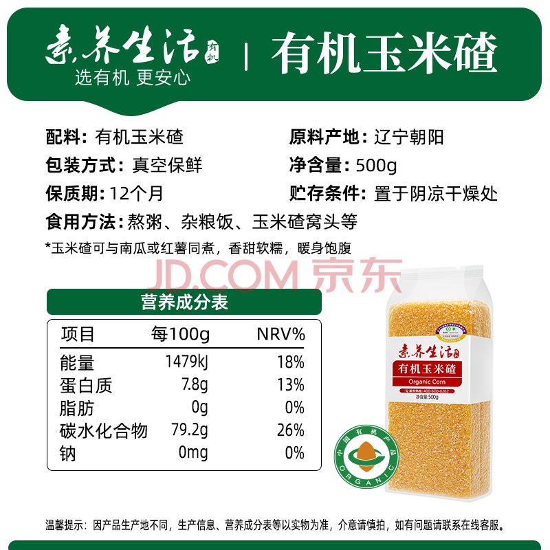 商品相册:素养生活有机玉米碴1斤 玉米糁 苞米渣 棒碴粥 小粒玉米碎 玉米粥 粗粮第