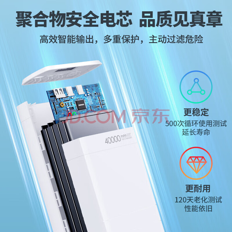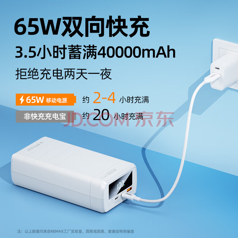 商品相册:睿量(REMAX)睿量 充电宝65W快充40000mAh大容量移动电源便携户外电源适用于小米华为 白 RPP-310第