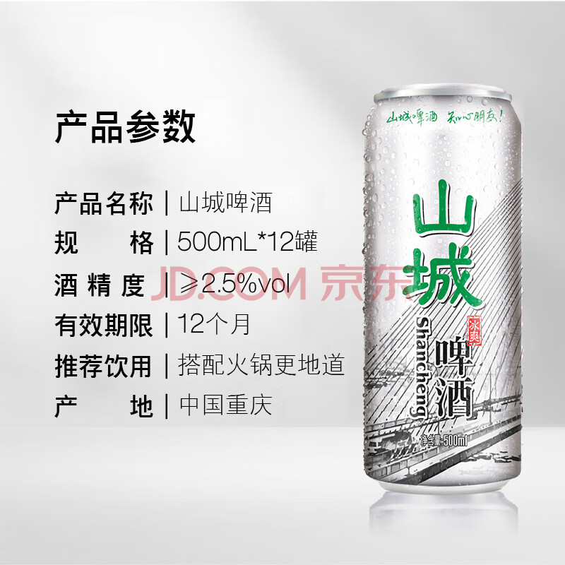 商品相册:重慶啤酒(ChongQing)山城冰爽500ml*12听整箱罐装优选麦芽8度啤酒火锅好伴侣第