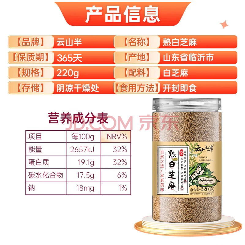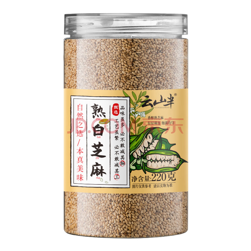 商品相册:云山半熟白芝麻粒220g无添加低温炒制开罐即食免洗五谷杂粮糕点烘焙原料第