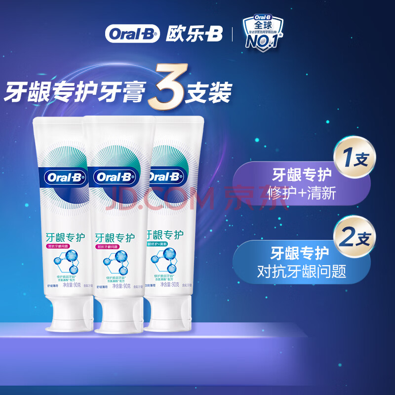 商品相册:欧乐B氨基酸小白管牙膏护龈减少牙龈问题90g*3支装共270g京东自营第