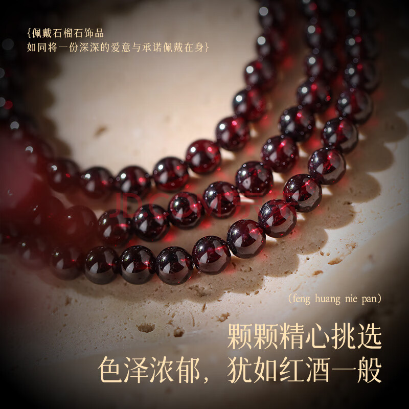 商品相册:凤凰涅磐天然石榴石手链女款三圈水晶手串高端首饰高档生日礼物女士送妈妈第