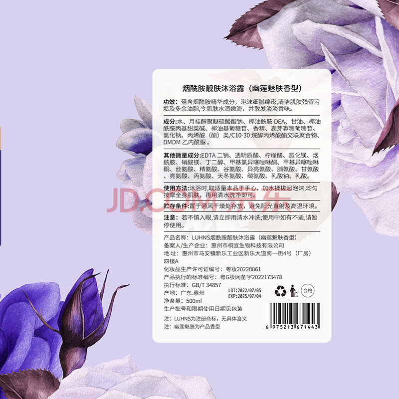 商品相册:LUHNS幽莲魅肤香氛烟酰胺亮肤香水沐浴液氨基酸温和嫩肤沐浴露500ml 第
