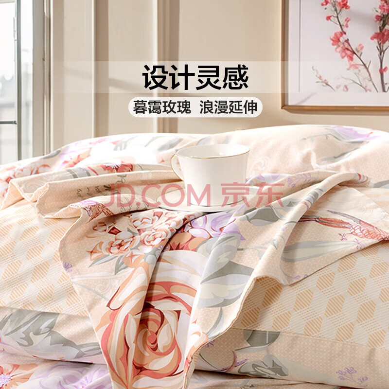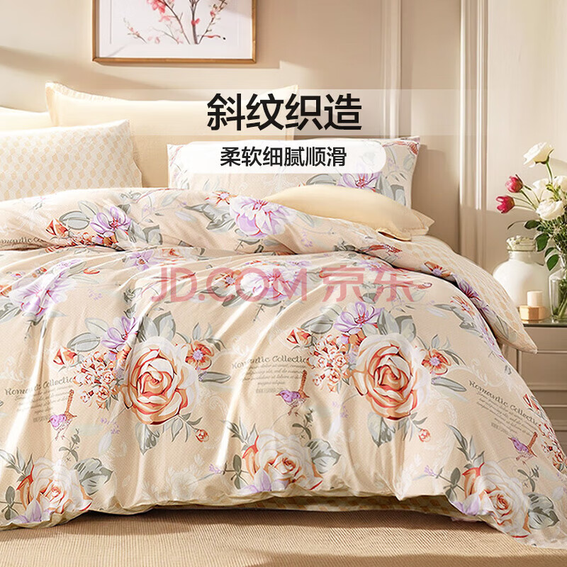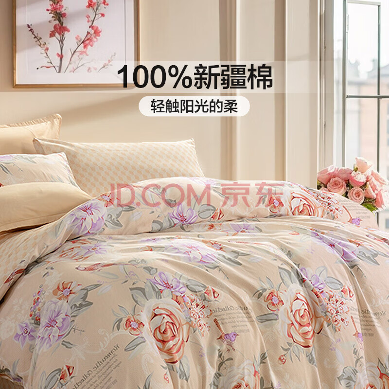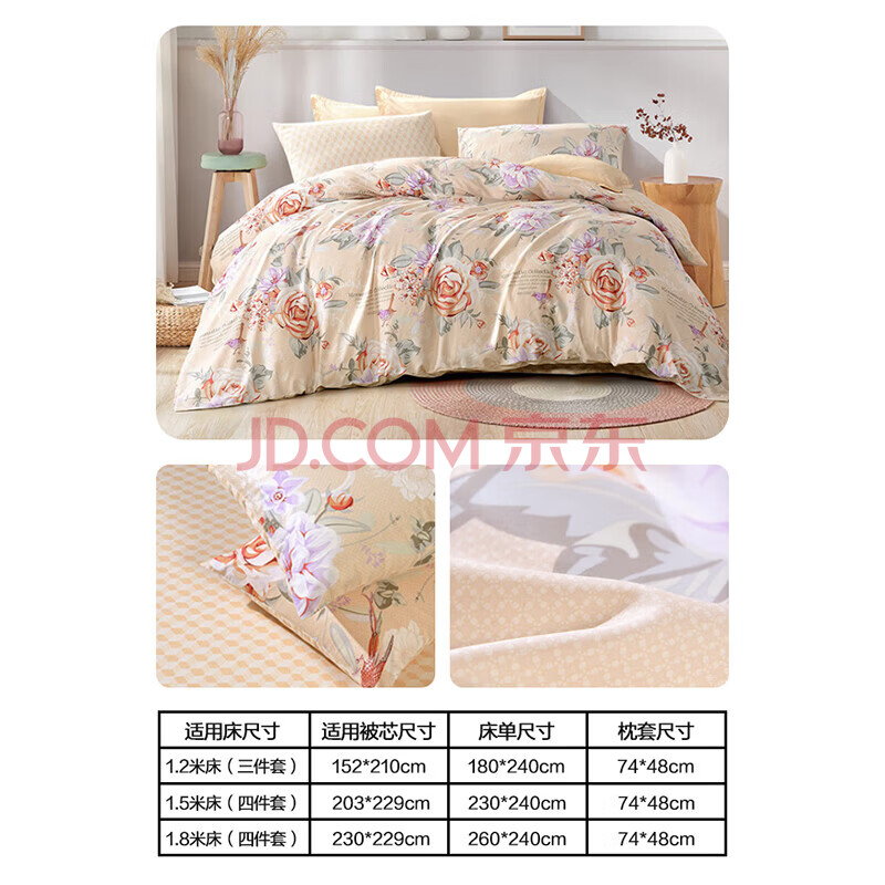 商品相册:富安娜床上四件套纯棉100%全棉床单被套 双人加大床品套件230×229cm黄第