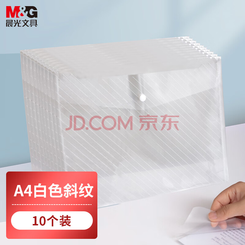 商品相册:晨光文具 10个装A4按扣学生桌面透明文件袋 试卷收纳 学科分类塑料防水档案袋透明ADM929YT第